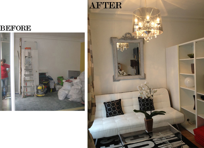 I hadn’t seen the apartment since June, when it was covered in an inch of plaster dust and had a gully running the length of the floor where the wall once stood. Now it was August, the renovation was complete, the furnishings I’d bought in June had been put in place by an interior designer I’d hired to pull it all together. I’d just arrived from New York and was going to be staying in my new apartment for the first time. My hand actually shook as I turned the key in the lock and opened my door. What I found inside made tears spring from my wide eyes.
