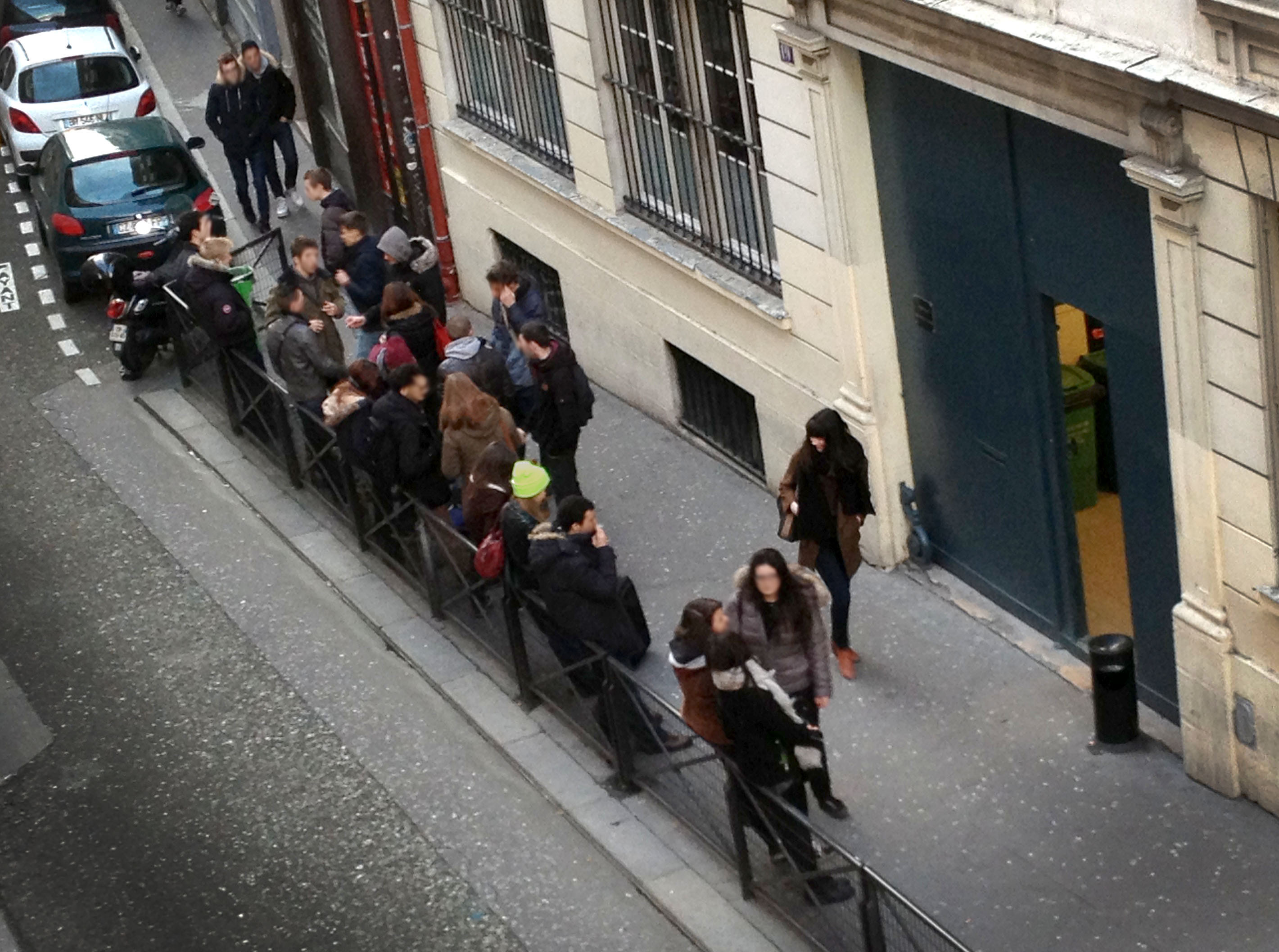 The narrowness of the street is responsible for another frequent offender: the honking horn. Since, there is no way to pass a vehicle that’s stopped—a waiting taxi, an unloading truck—cars back up and honk for freedom. Parisians, it seems, don’t employ the short, sharp honk, instead—much the way they like to talk—tend toward a long, drawn-out discourse. Hooooonk! Hoooooooooooooooooonk! By the way, European automakers favor a particularly piercing, high-pitched honker. Cuts right through you. I have been known to throw open a window and make a few honks of my own. Shuuuuuuut the [honk] uuuuuuuup! Why this short street should be such a popular choice for motorists is a mystery to me.