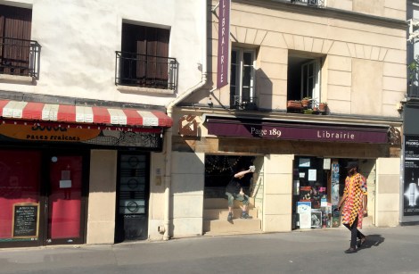 Shuttered shops. The owner of the bookstore takes advantage of the downtime to clean his windows. ©Lisa Anselmo