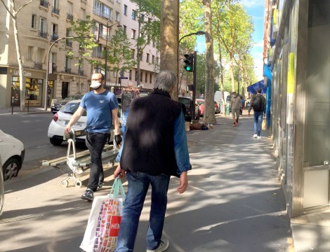 While Rue du Faubourg Saint-Antoine was quiet, streets with grocery stores, like this one, were full of shoppers, the chaos of activity jolting me after so many days holed up at home. It kicked up my paranoia. People were passing within inches of each other, as if it were any other day. I wished it were any other day, but the presence of face masks, including my own, reminded me. I moved out into the street to maintain a reasonable distance from those who seemed blithely oblivious of the pandemic. Oh, to be in their heads.