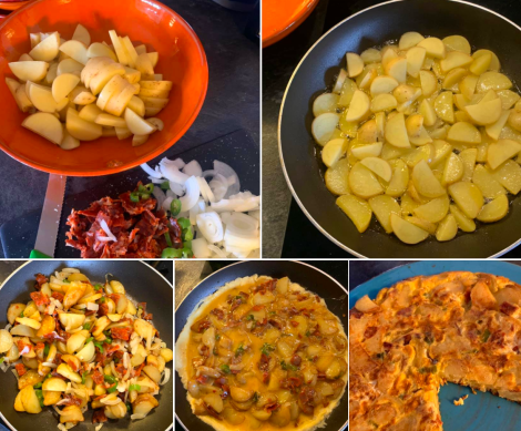 “I wanted to make a Spanish tortilla, but I didn’t have enough olive oil, so I just added a bit of duck fat,” friend Patty told me. “And it came out pretty good.” I’ll bet it did. Duck fat? Patty is not afraid of trying new things. The other day she made Pork Tinga. Yeah, I had to Google it, too. She had it at a restaurant once and liked it, so she thought she’d give it a try at home. No recipe, just from taste memory. Easy-peasy, right? Want to make Patty’s Spanish Tortilla? See the recipe below.