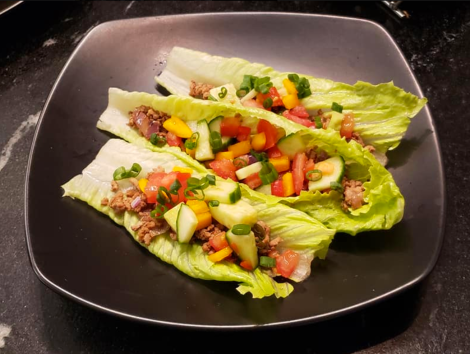 My friend Edward is a very chic guy. So is his food. He’s been cooking up something special every day. And his dishes are as inventive and healthy as they are gorgeous to look at. Above, what he called, “‘Asian’ turkey lettuce wraps.” I know.