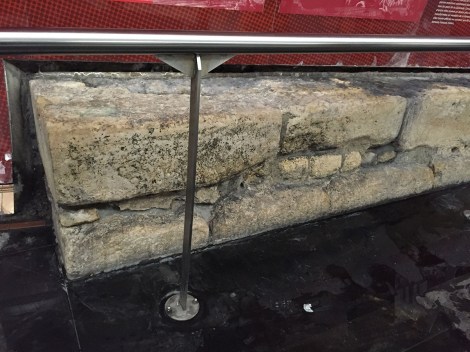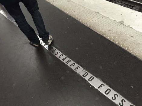 Reminders of imprisonment. A piece of the foundation of the Bastille prison is visible from the platform of the Bastille station on the Line 5 Métro. The perimeter of the prison is also marked (below). ©Lisa Anselmo