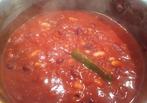And this is my contribution: my mom’s chili recipe using two kinds of beans. I also added some cocoa for an extra kick (sorry, Ma!).