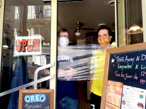 “Here she is!” Julien exclaimed from behind a protective cellophane screen stretched across the door. He called to Craig to come see who had turned up. Craig appeared, the skin around his eyes crinkling from the smile hidden behind his mask. We all hadn’t seen each other in the flesh since lockdown began. In fact, the last café meal I had was with Craig at the venerable Café Louis Philippe in early March.