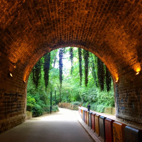 This was once the underpass of the Bastille train line. Now it’s a peaceful pedestrian walkway, part of a verdant park. ©Lisa Anselmo