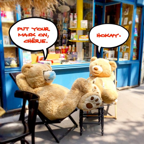 These giant stuffed bears are all over Paris, and these days are employed to create social distancing at cafés. ©Lisa Anselmo