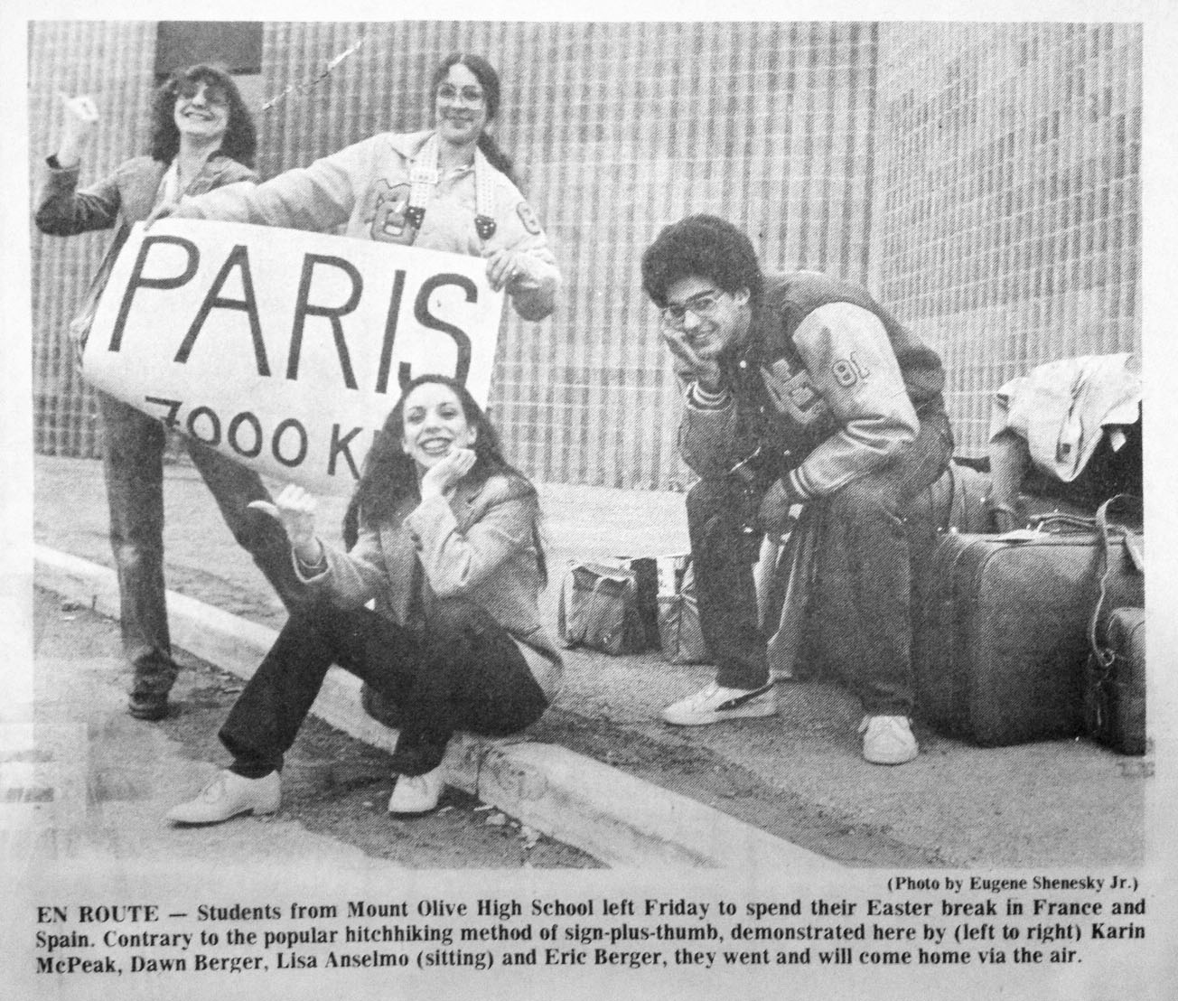 This is me (on the curb), headed off to my first trip to France and Switzerland with my French class over Easter break. If you’ve read my book, you know about this from Chapter Two: Paris Was an Accident.