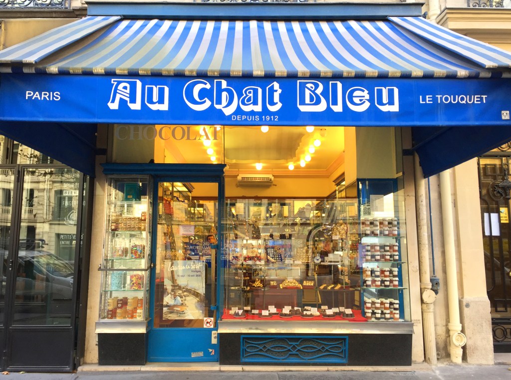 After I snapped about 100 photo of the tree, I took a stroll in the area. Let’s just say I didn’t get far. The lure of chocolate stopped me in my tracks. This darling shop, packed with handmade chocolate, Au Chat Bleu, has been in business since 1912. Normally, I’d scan the window and keep going; I’ve been off sugar for a while. But you know, birthday. Would it make me happy to go inside? Yes. So I did.