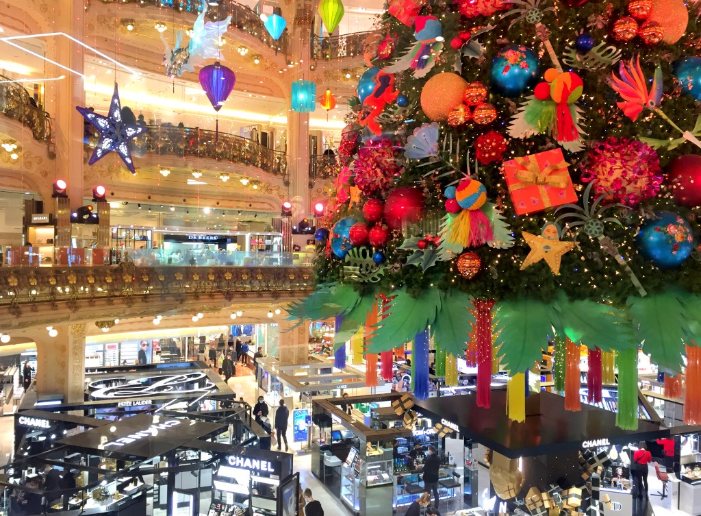 The tree at Galeries Lafayette is to Paris was the Rockefeller Center tree is to New York—a symbol of hope and stability, never more needed than now. It was especially uplifting to see that, despite everything, some things, like this beautiful tree, endure.
