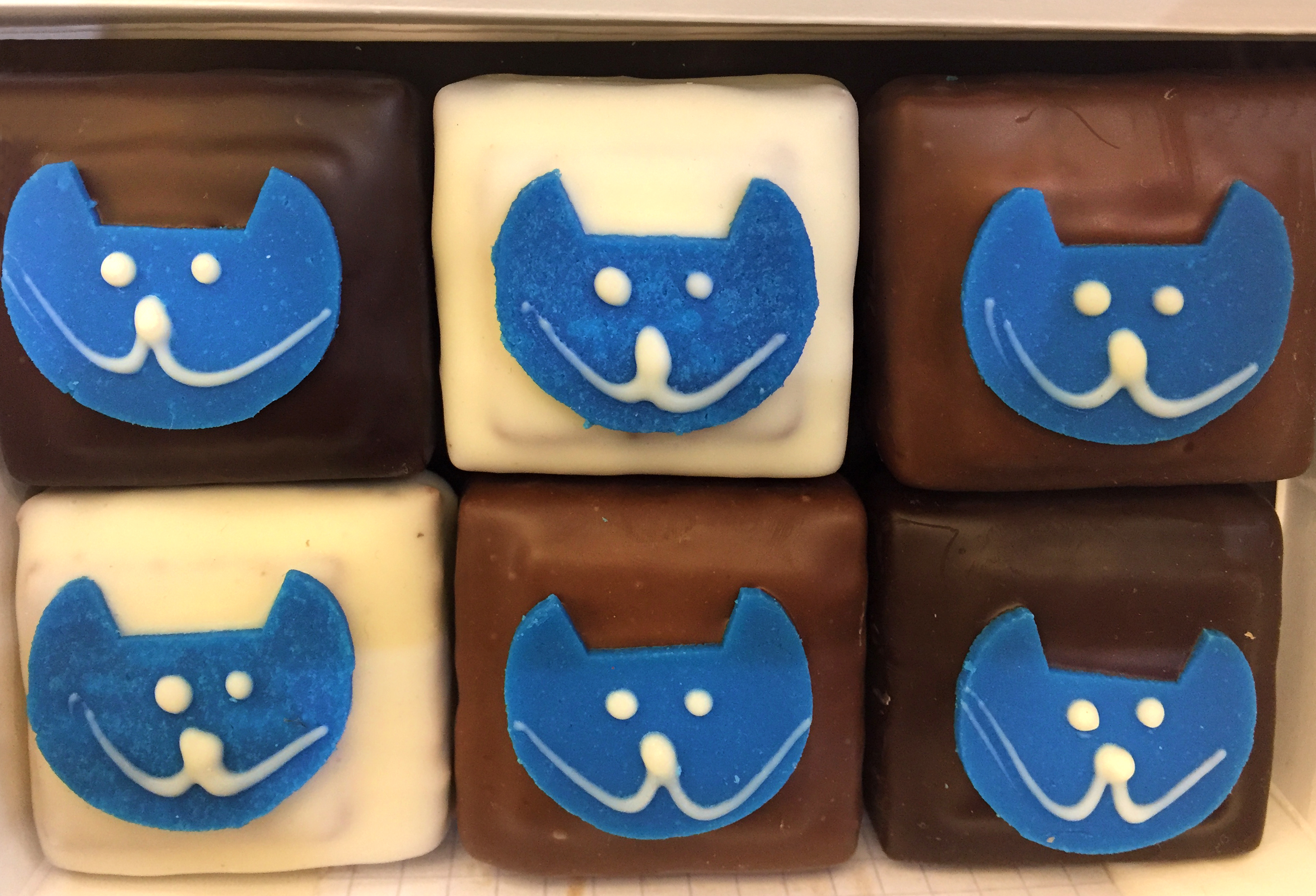 Adorable blue cat chocolates from Au Chat Bleu. ©Lisa Anselmo