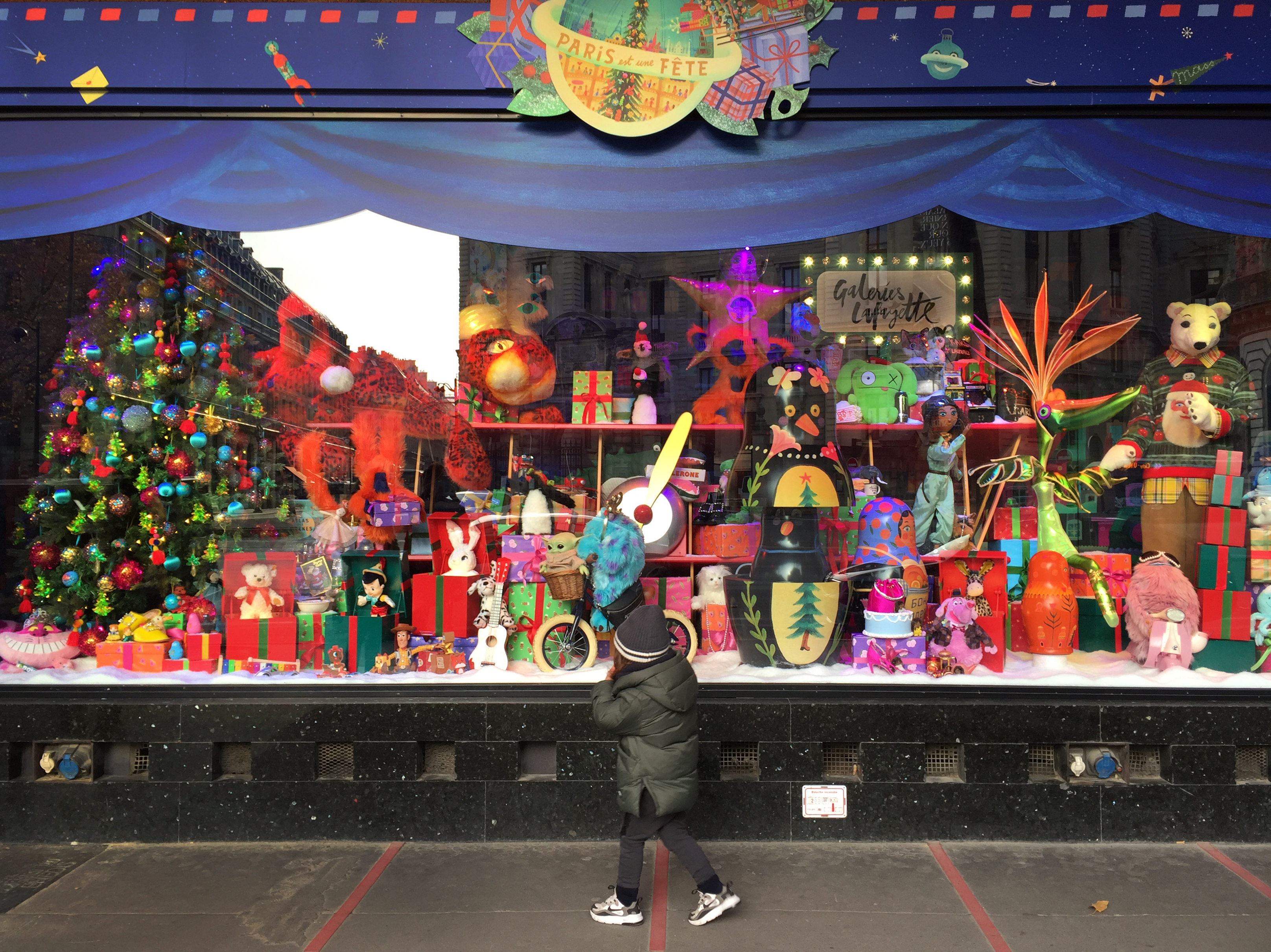 The windows at Galeries Lafayette told the story of the travels of a young explorer. That’s her in the teal jumpsuit on the right of the scene, next to the flamboyant bird. This little girl was captivated.