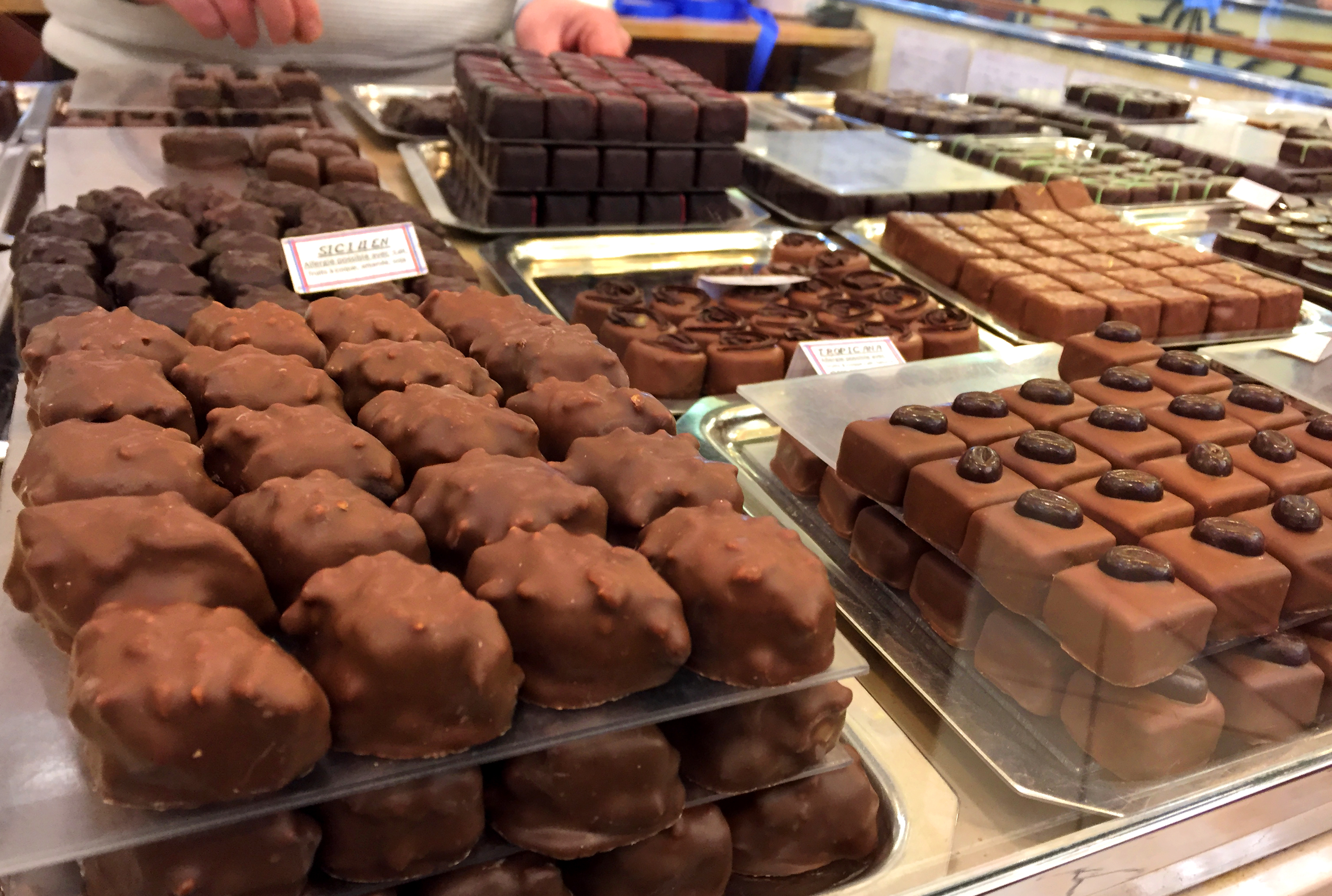 After I snapped about 100 photo of the tree, I took a stroll in the area. Let’s just say I didn’t get far. The lure of chocolate stopped me in my tracks. This darling shop, packed with handmade chocolate, Au Chat Bleu, has been in business since 1912. Normally, I’d scan the window and keep going; I’ve been off sugar for a while. But you know, birthday. Would it make me happy to go inside? Yes. So I did.