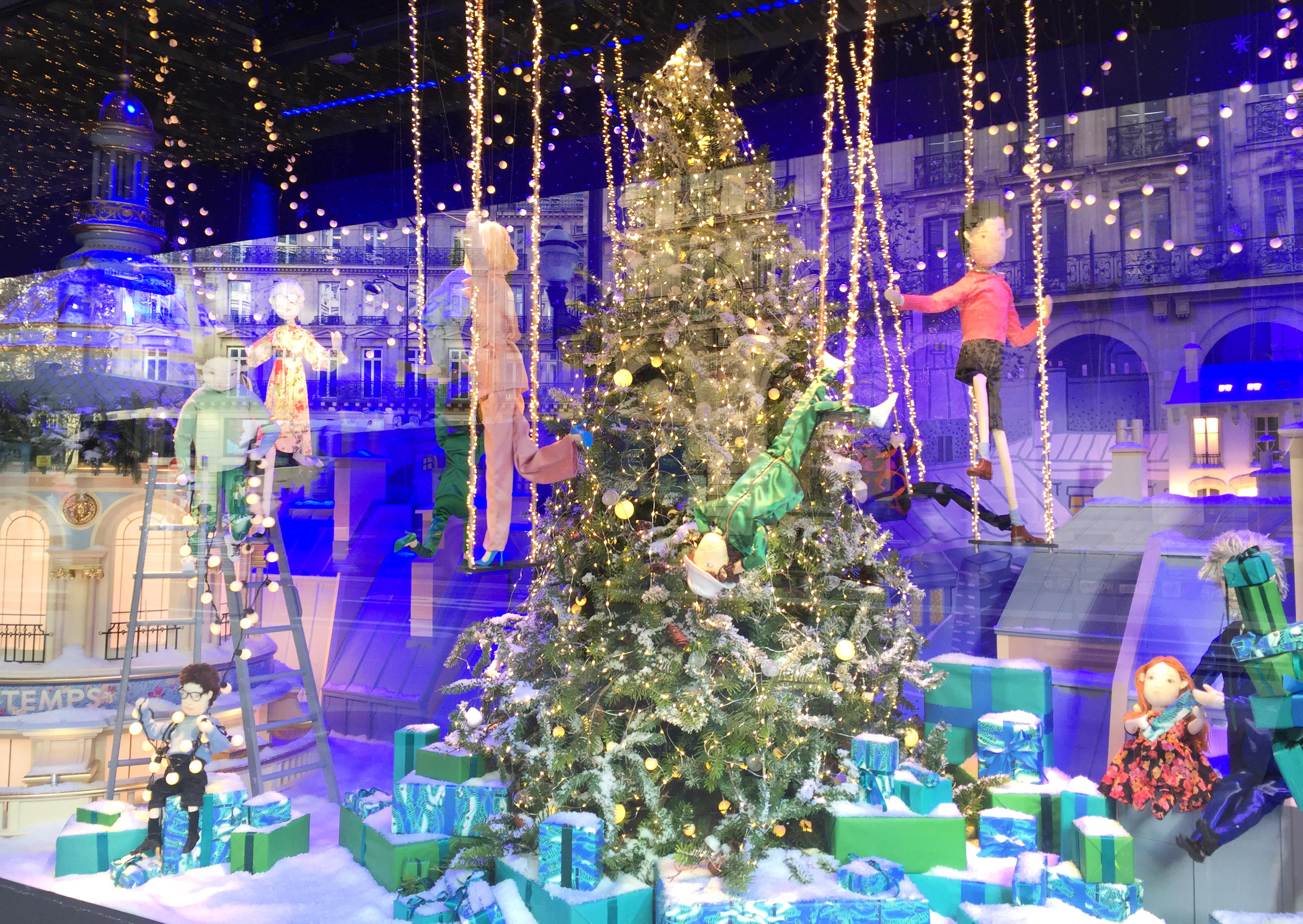 And speaking of icing on the cake, next on my list of birthday happy-making activities: the holiday windows at les grands magasins, capped off by the tree at Galeries Lafayette.
