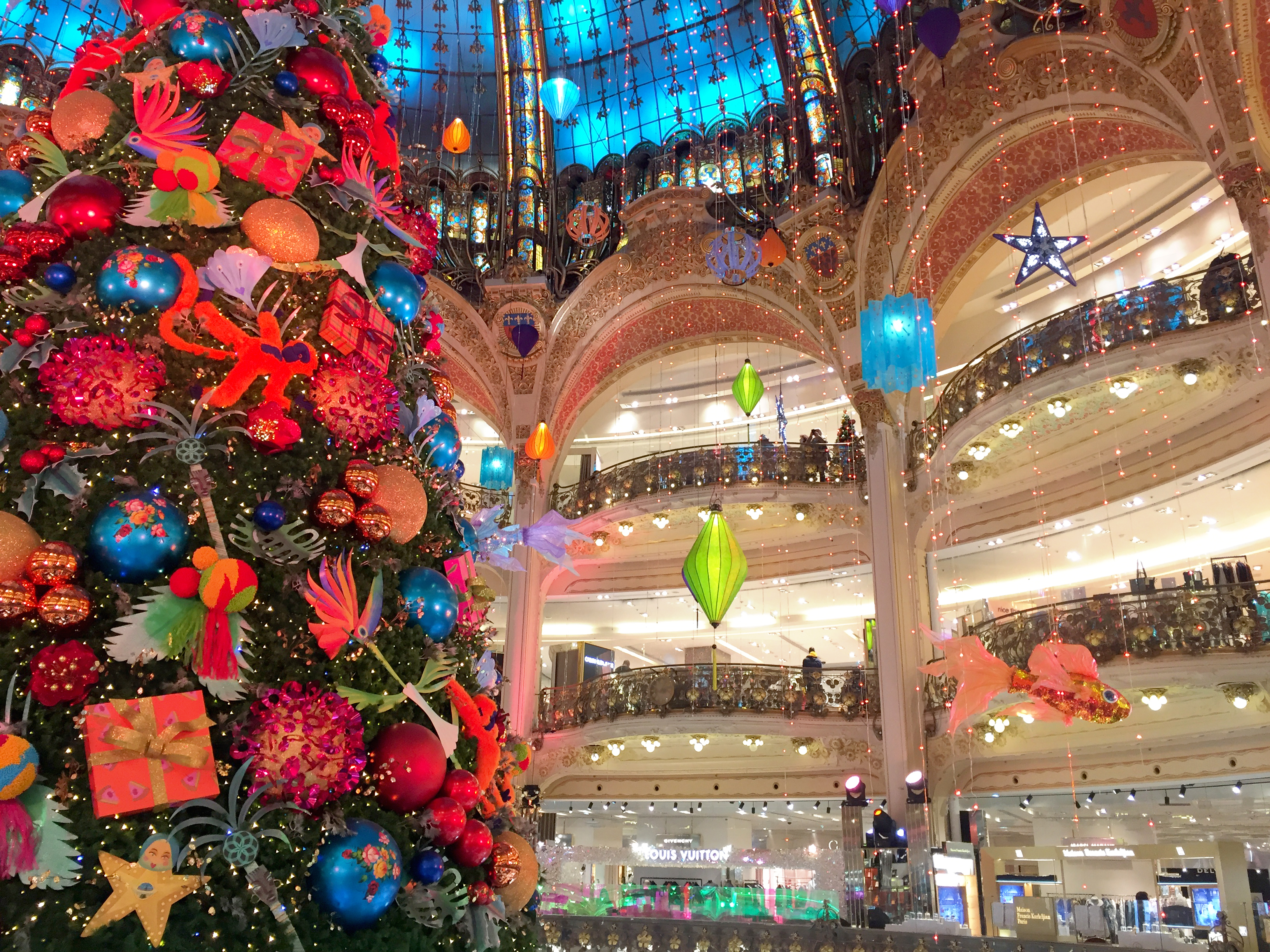 The tree at Galeries Lafayette is to Paris was the Rockefeller Center tree is to New York—a symbol of hope and stability, never more needed than now. It was especially uplifting to see that, despite everything, some things, like this beautiful tree, endure.
