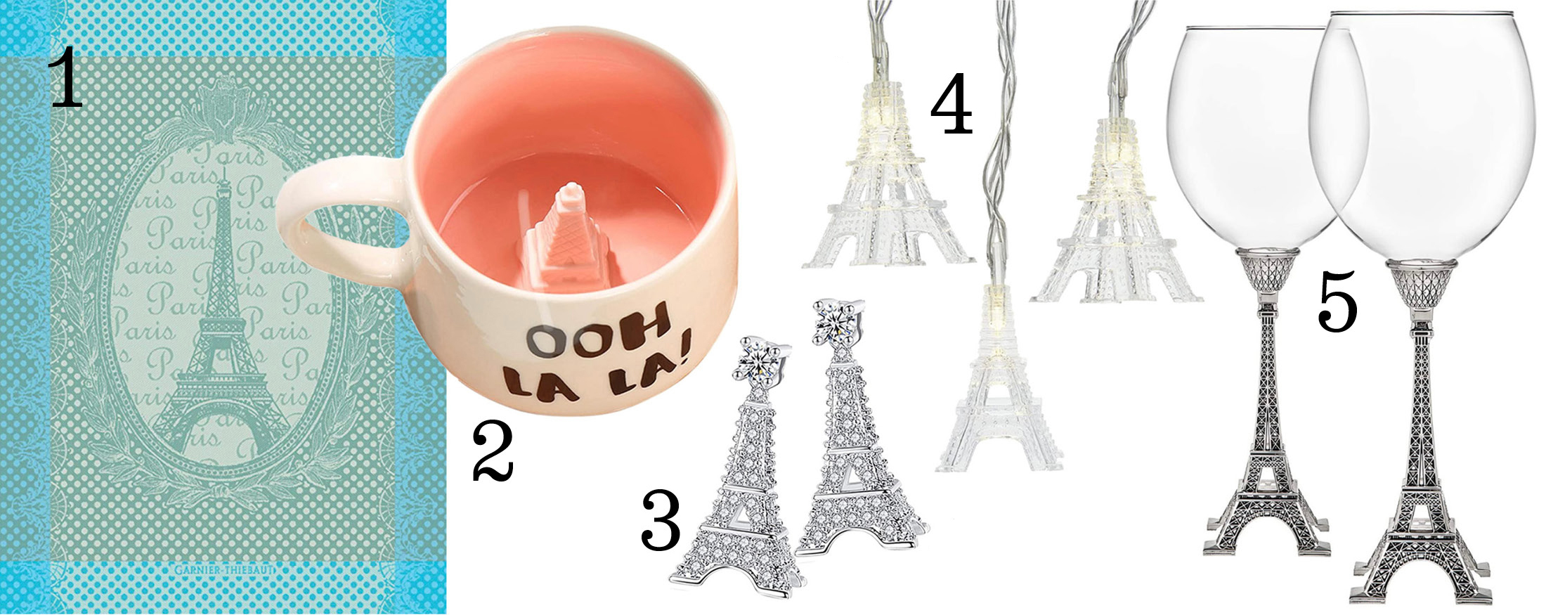 Who doesn’t love a good Eiffel Tower thingie? Here are just a few ideas. (Click on name to buy.)
