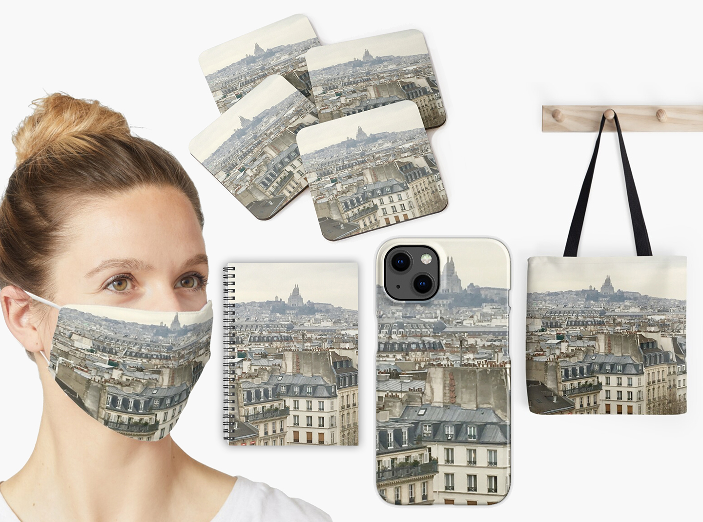 Friend Patty Sadauskas of Genuine France, has created a huge line of items showcasing her wonderful photography of Paris (and other places in France). This is just one of many images to choose from, and just a few of the products you can order. From masks and totes, to iPhone covers, coasters, notebooks—even puzzles—there is something for everyone. You can also just order a lovely framed photo. Check out the full line, here.